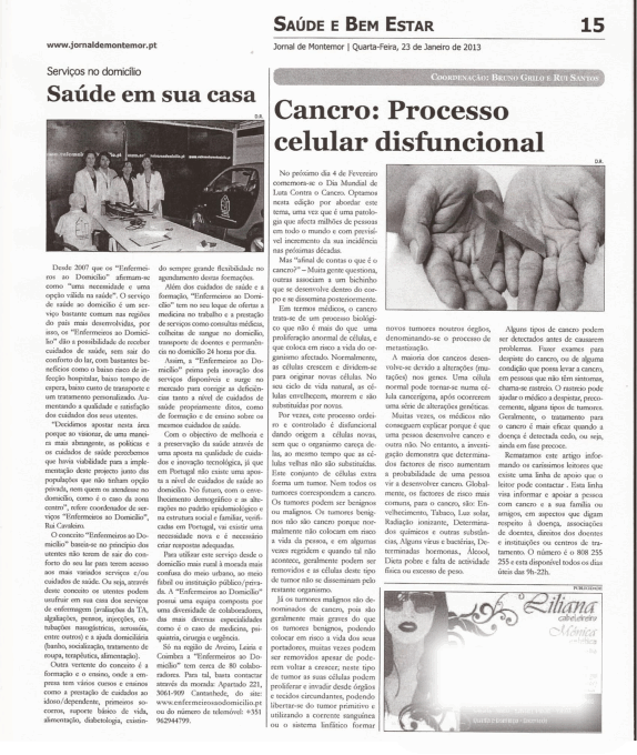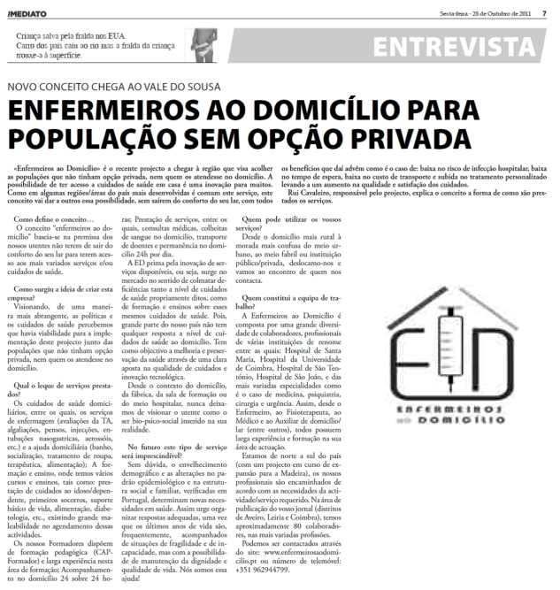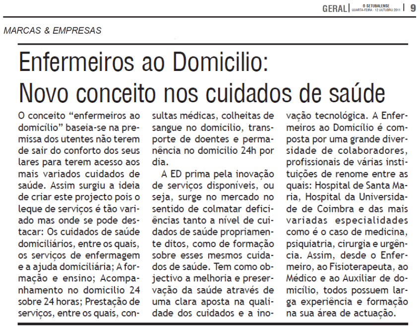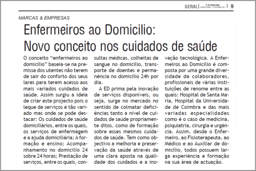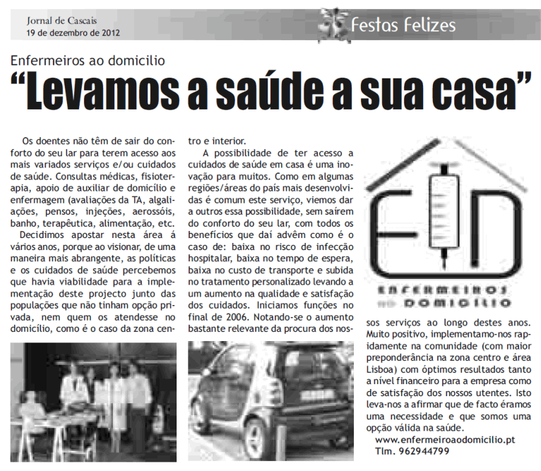 NOTÍCIAS - Enfermeiros ao domicílio - Levamos a Saúde a sua casa